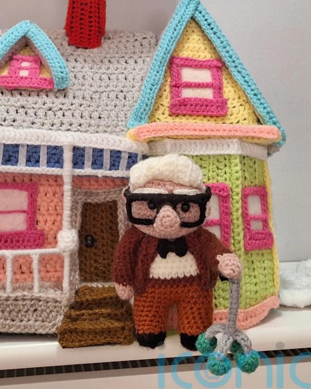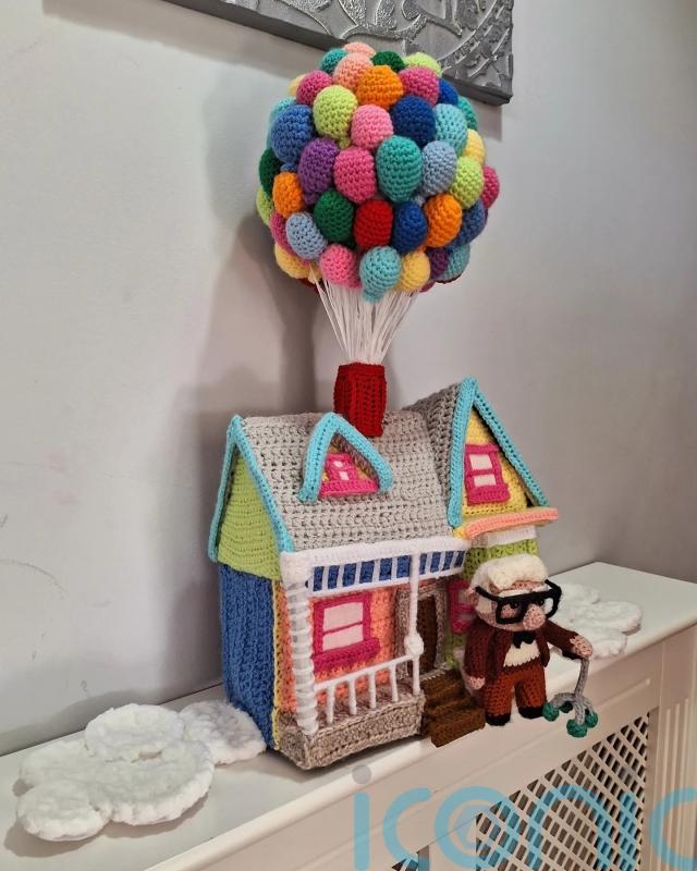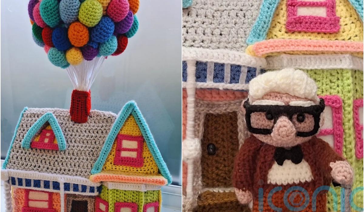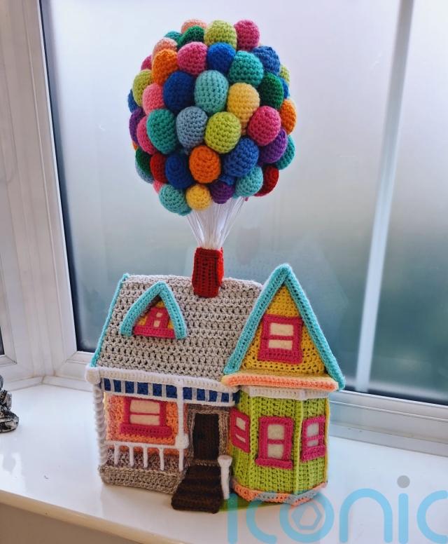 A Disney fan who has been compared to Banksy by some in her local area has crocheted a miniature version of the famous balloon house in the movie Up.