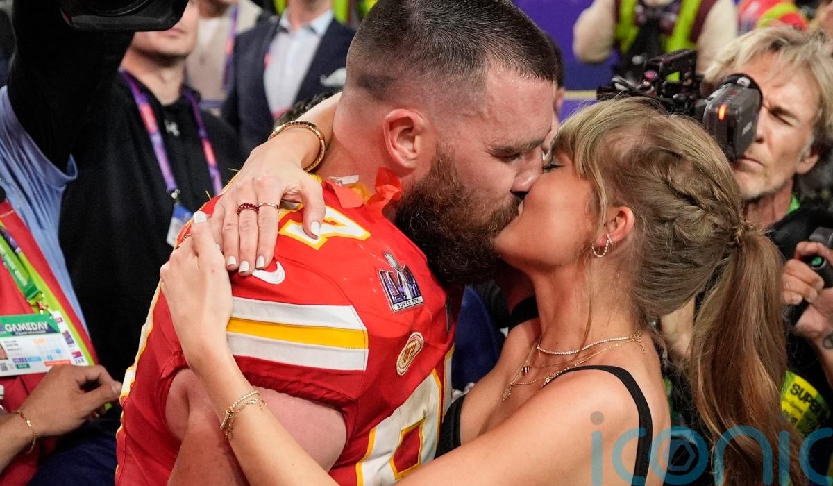 Taylor Swift sealed Travis Kelce’s Super Bowl victory with a kiss.