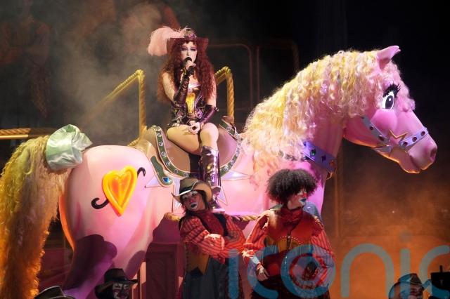 Earlier in the night, she delivered a joyful and theatrical performance of her disco anthem Pink Pony Club which saw her start by sitting on a giant pink pony before joining a group of dancers dressed as rodeo clowns for some western-inspired choreography.