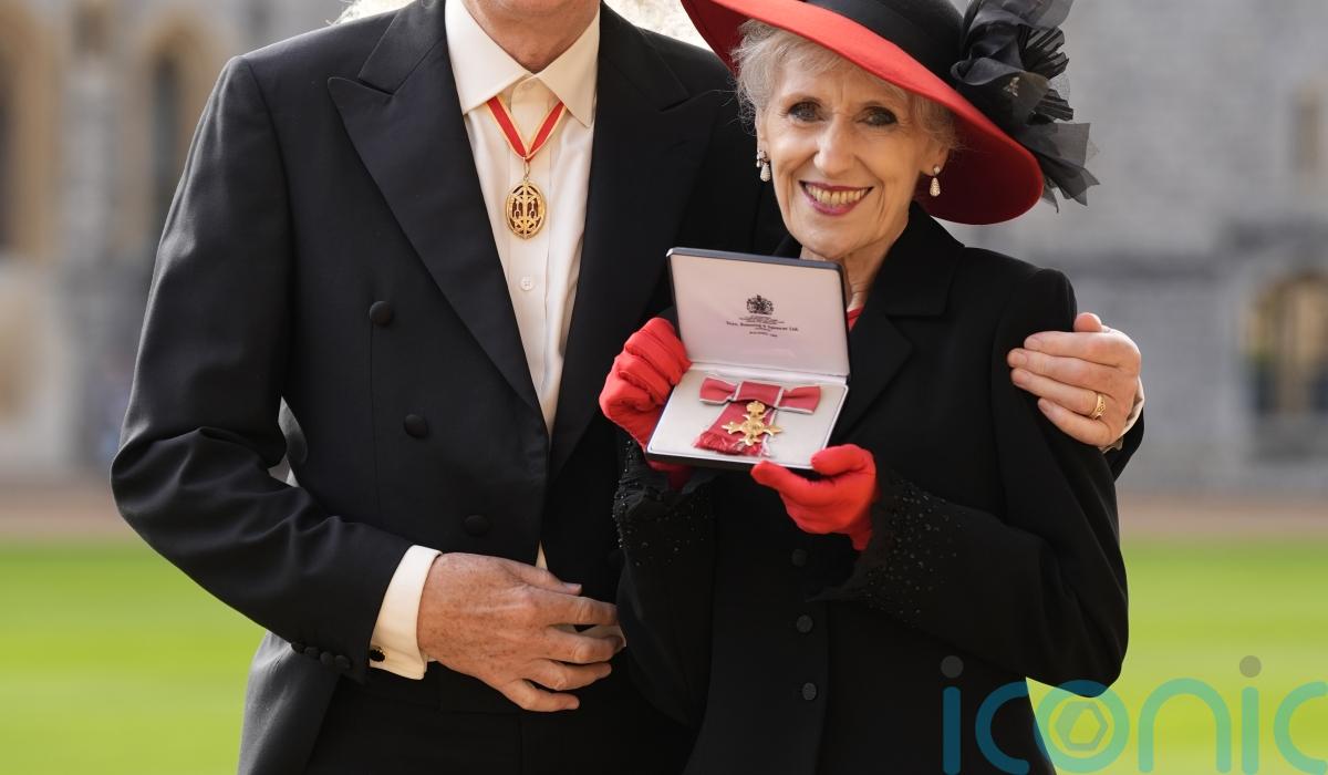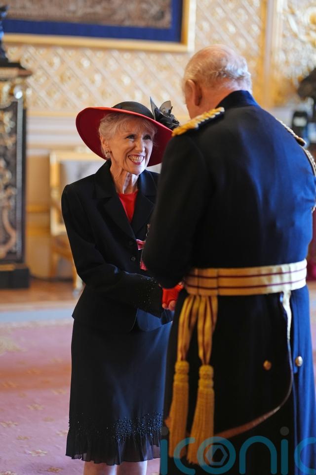 The Doctor Who star, 76, was honoured by the King during an investiture ceremony at Windsor Castle on Wednesday, which she attended with her husband, Queen guitarist Sir Brian May.