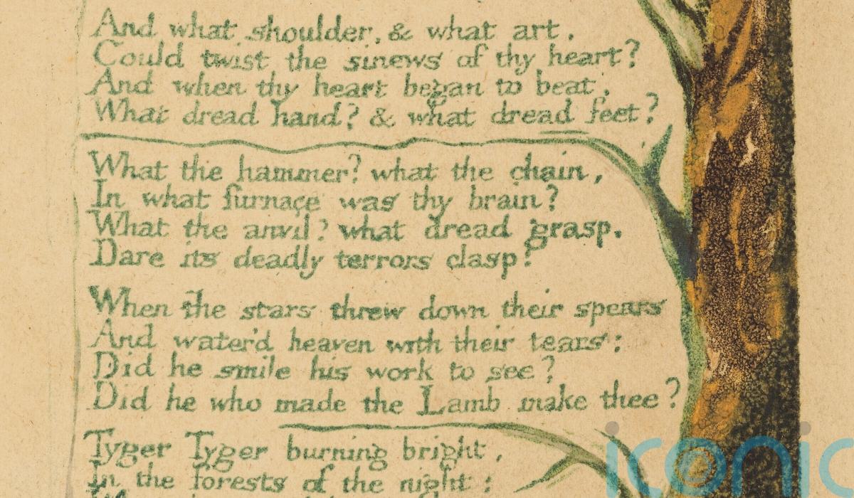 A rare print of William Blake’s The Tyger poem is to go on auction where it is expected to fetch up to £120,000.
