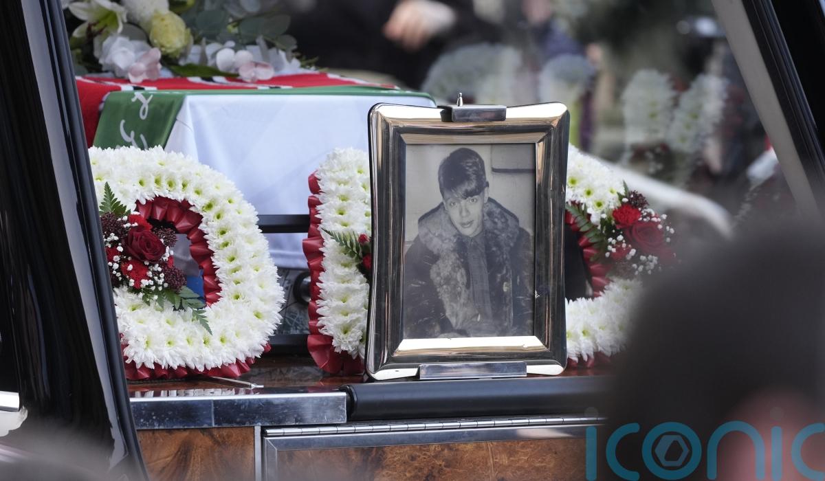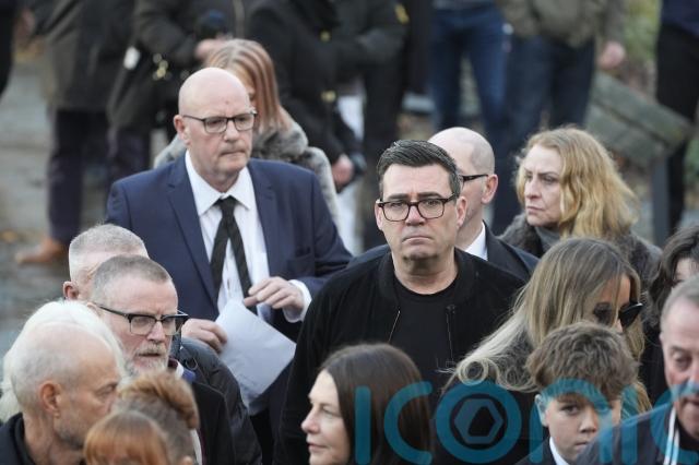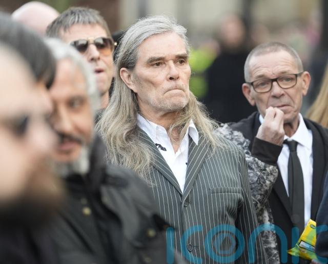 Mounfield’s coffin – which was decorated with the classic artwork from The Stone Roses first album – was carried into the cathedral as family and friends followed, with more applause from the crowd.