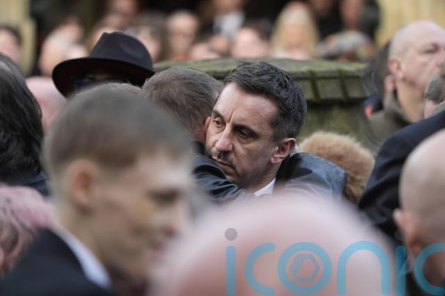 Former Manchester United players David Beckham and Gary Neville were also among hundreds of mourners at the service.