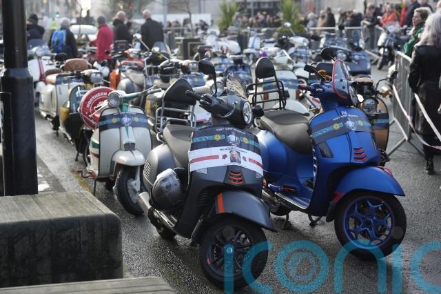 Hundreds more fans gathered outside the cathedral and applauded as the cortege arrived, preceded by a guard of scooter riders as The Stone Roses track I Wanna Be Adored played on speakers.