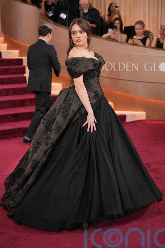 British actress Aimee Lou Wood, who is nominated for The White Lotus, arrived in an asymmetric Vivienne Westwood ballgown and said it is “quite surreal” to be at the Golden Globes, adding: “I don’t think I’m quite accessing the reality yet.