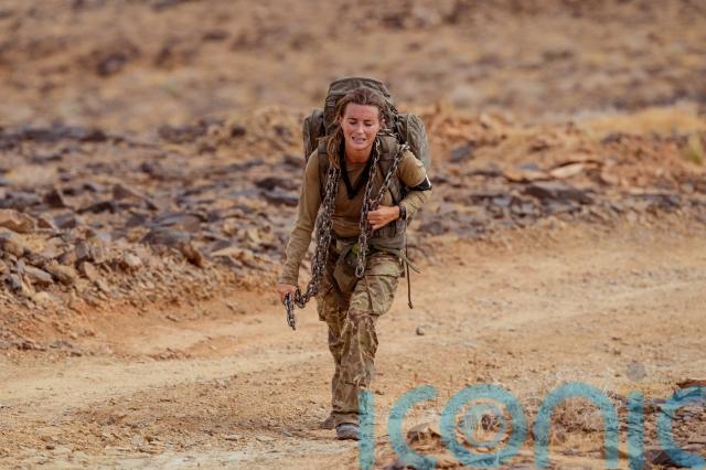 The first challenge saw the contestants run up a series of hills in 40C heat while carrying 15kg Bergen backpacks, and midway through they had to pick up a number of heavy objects – including jerry cans, chains and tyres – as they continued their uphill battle.