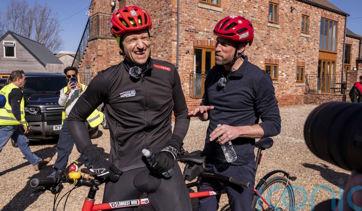 William joined him just north of Doncaster and they cycled together through the South Yorkshire countryside as James makes his way from Weymouth to Edinburgh over eight days on a 1,000km challenge.