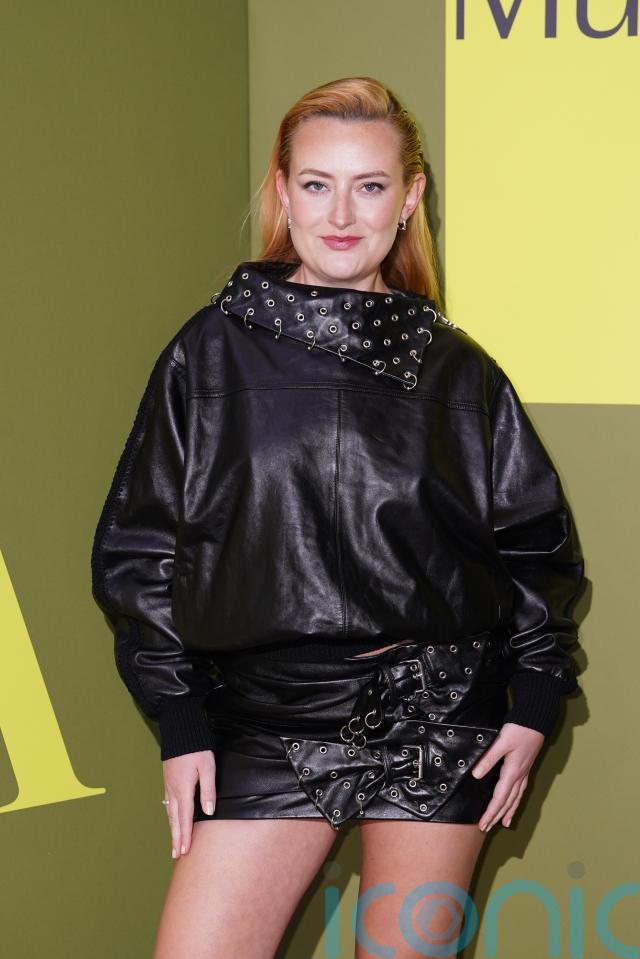 Comedian Amelia Dimoldenberg, known for her Chicken Shop Date web series, also opted for a black outfit and wore a leather-look jacket with a studded funnel collar.
