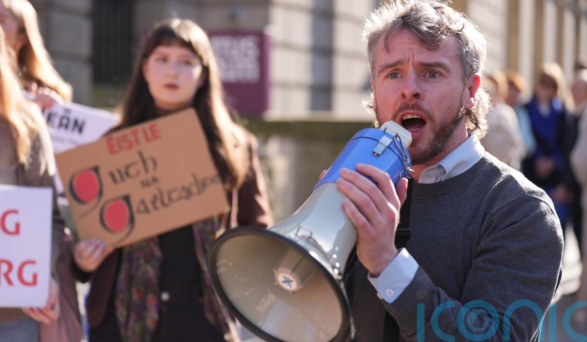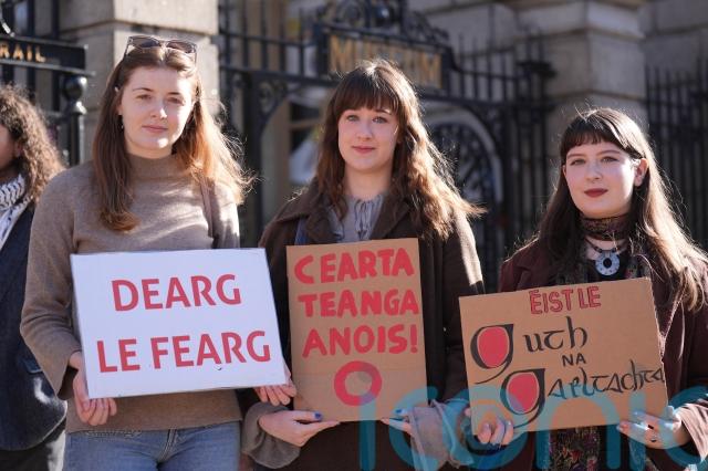 The demonstration was held by a coalition of campaign groups outside the Houses of the Oireachtas to highlight the “disproportionate” impact the shortage of affordable housing is having on Gaeltacht areas.