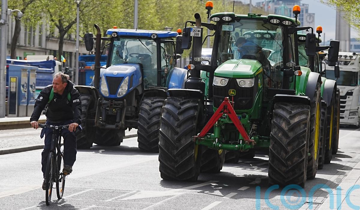 Around two dozen protesters stood on O’Connell Bridge on Wednesday morning as a handful of tractors remained parked on O’Connell Street overnight.