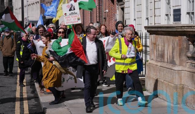 She thanked the people who supported her along the way, people who had been “standing in their gardens” in Dublin as she passed, and the protesters who gathered with Palestine flags and posters at Leinster House.
