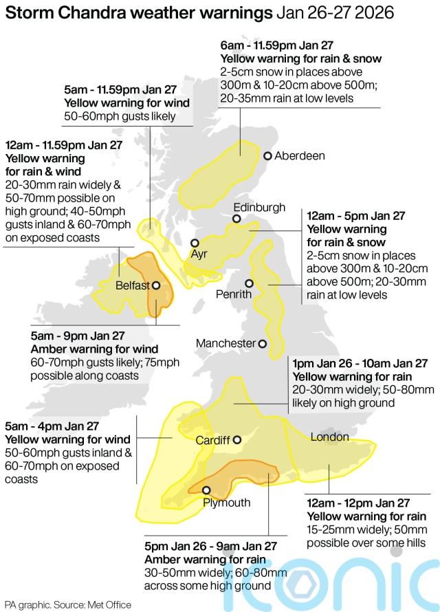 Schools shut and thousands without power as Storm Chandra hits island of Ireland