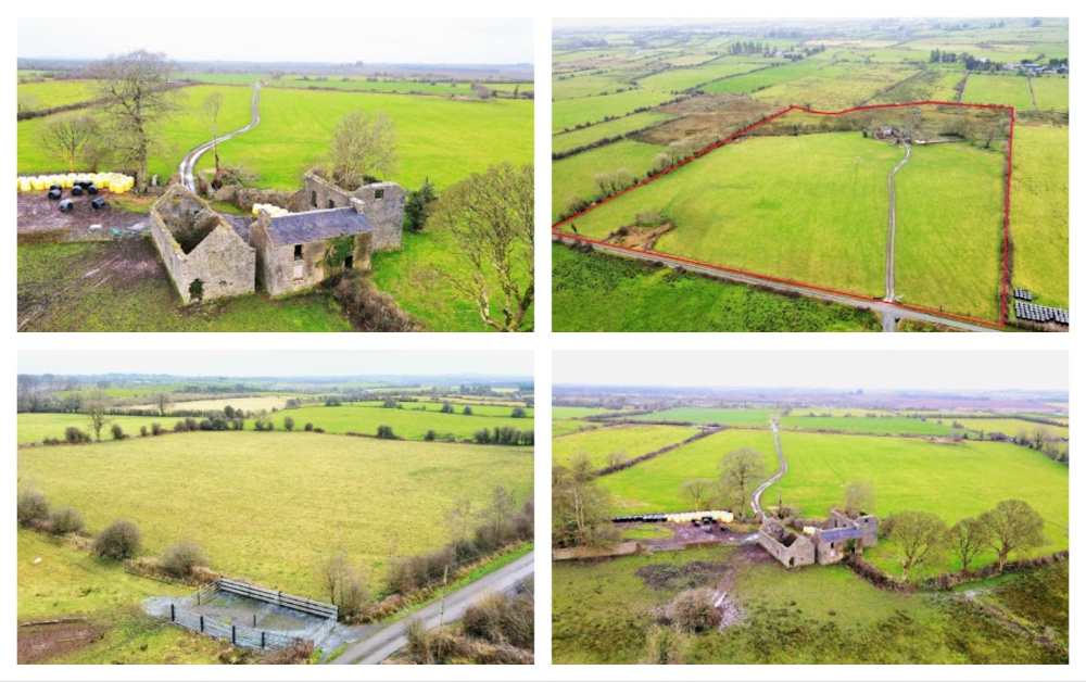 Standing on the larger plot is a derelict two storey residence and outbuildings in need of renovation, including a former stables and courtyard. This old residence may qualify for the vacant homes refurbishment grant if desired.
