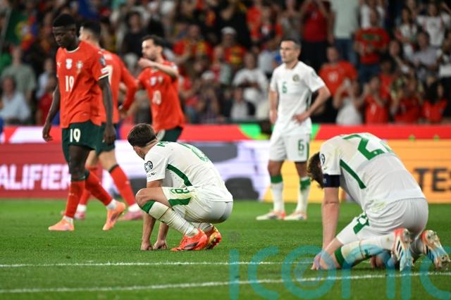 Portugal were given the chance to take the lead from the spot with 15 minutes to play when Slovakian referee Ivan Kruzliak awarded a spot-kick after Francisco Trincao’s shot hit Dara O’Shea’s arm, but Ronaldo stepped up and aimed down the middle which was stopped by the legs of Kelleher.