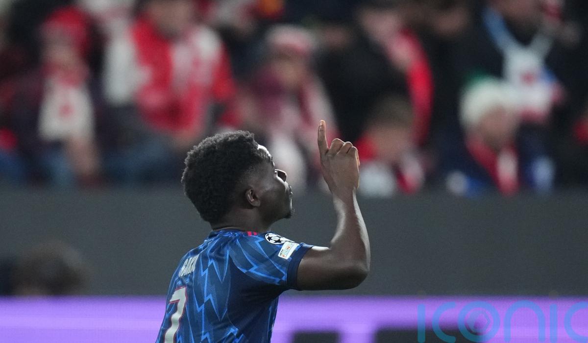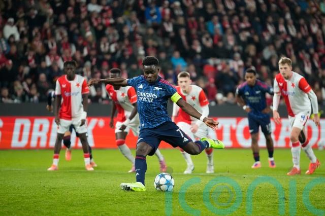 Saka drilled the penalty home in the 32nd minute, his fifth goal of the season in all competitions and second in this season’s Champions League.