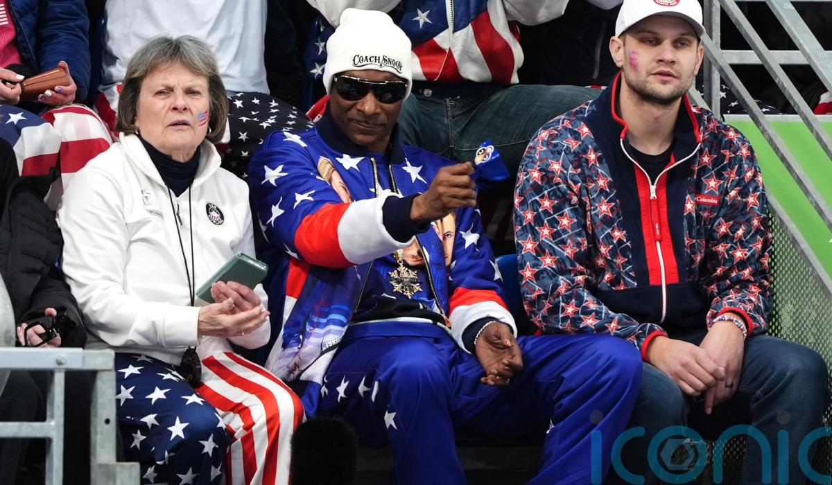 Snoop carried the Olympic flame earlier in the week, having also been a torchbearer in Paris two years ago, and took to the ice himself to try sweeping a stone.